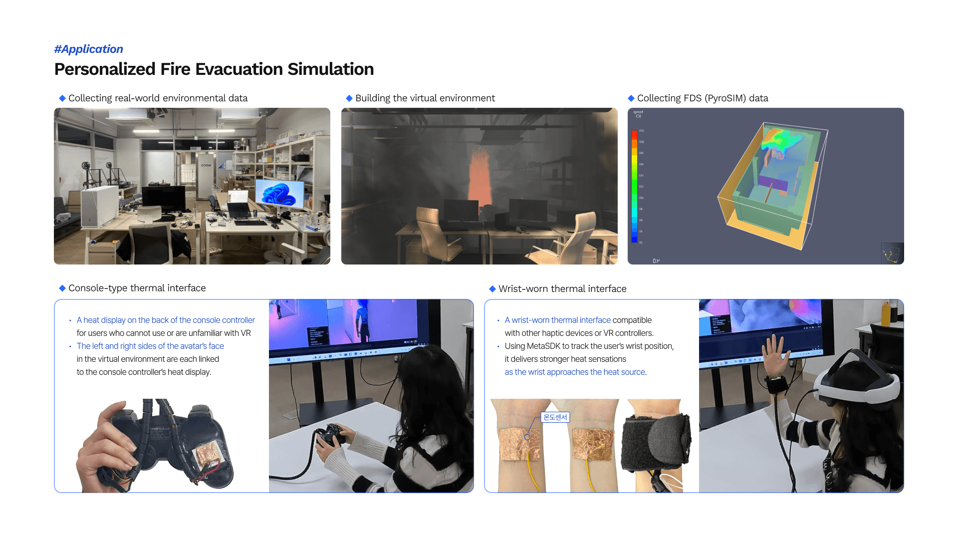Hoseok Jung, Jiyoon Lee, and Hyunimin Kang. 2025. Thermal Haptics for Fire Simulation: Radiative and Convective Heat Transfer Model from Fire Dynamics Data. In Proceedings of IEEE International Symposium on Mixed and Augmented Reality (ISMAR ‘25). (Research demonstration). DOI: [https://doi.org/10.1109/ISMAR-Adjunct68609.2025.00305]